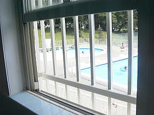 ![]() 温泉に隣接してる温泉プール 夏休みなので家族が水遊びを楽しんでいた。 このプールの向う側がテニスコートとなっている。 |